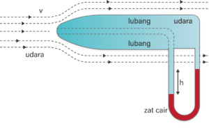 Tabung pitot ialah sebuah alat yang digunakan untuk mengukur kelajuan gas yang berada di dalam pipa. Perhatikan gambar berikut.